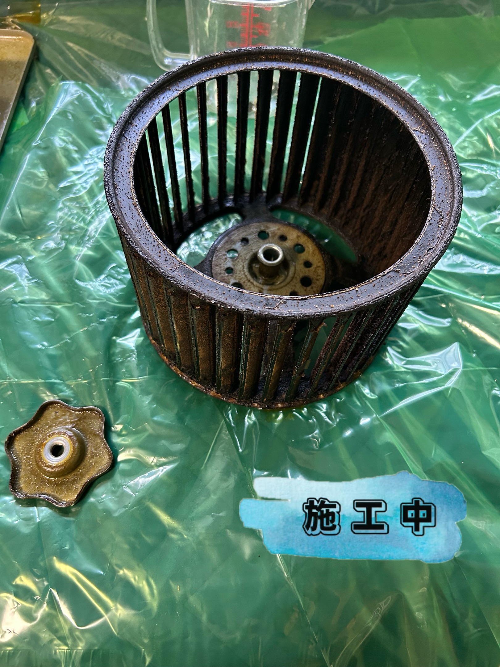 新規のお客様からご依頼。 20年近く使用している換気扇、掃除は表面とフィルターのみで、最近、強弱スイッチの接触が悪いとの事で、開けてみると油汚れがびっしり。「毎日、美味しい料理を作られているんですね」 オイルキャッチも満タンでした。スイッチは分解して接点洗浄し復活。シロッコファンも1枚1枚こびり着いた油を剥がしました。