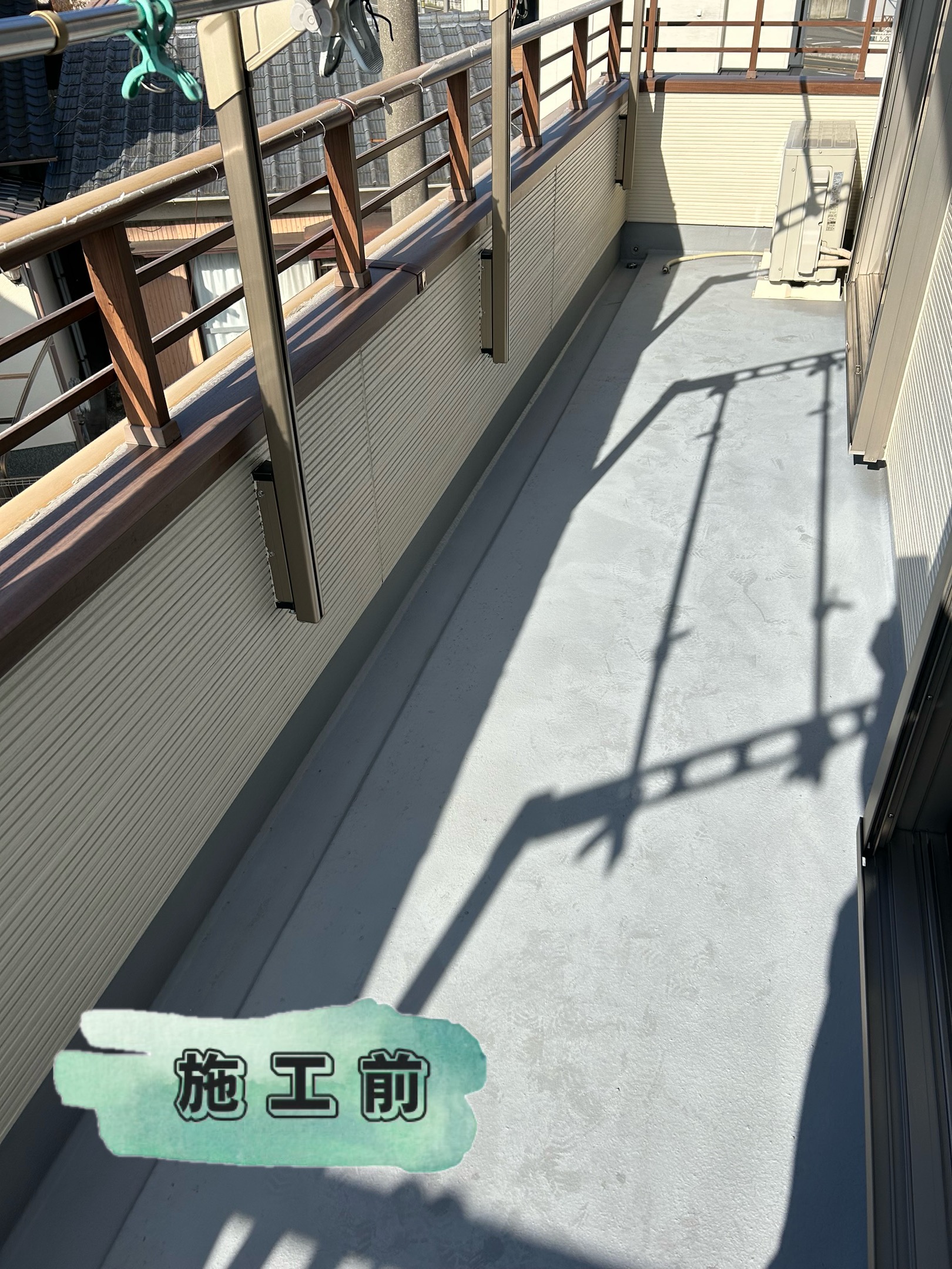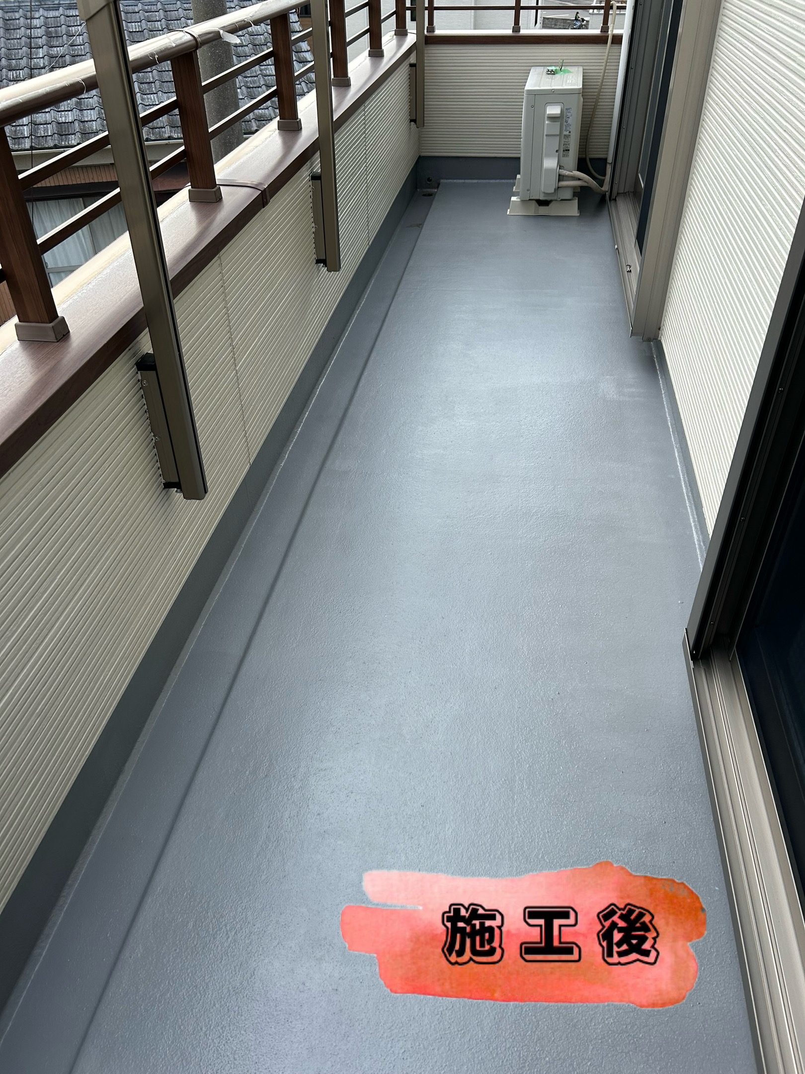 リピーターのお客様からご依頼いただきました。 外壁塗装は、2、3年前にしたけど、ベランダの防水塗装は別と言われたとの事で・・ 秋晴れが続くこの時期に施工させて頂きました。 定期的なメンテナンスで、大切なお家を長く守ります。